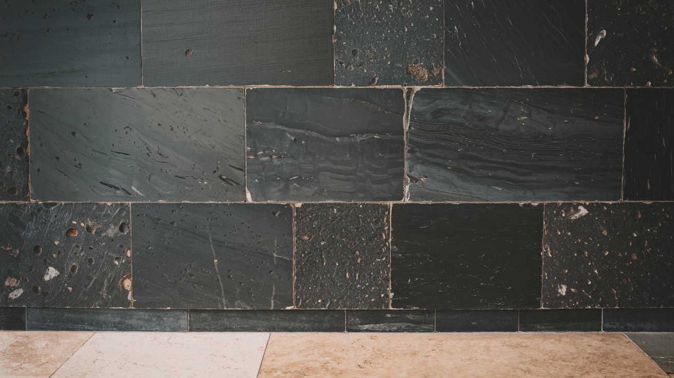玄武岩是一種火山噴出岩,主要由輝石、橄欖石和斜長石等礦物組成,具有細密的結晶結構和堅硬的質地。其顏色通常呈現深灰、黑色或深綠色,賦予空間一種自然且莊重的美感。由於其優異的耐磨性和抗壓強度,玄武岩常被應用於地板、牆面和台面的設計中,特別適合高流量的公共空間和需要耐用性的商業環境。此外,玄武岩的熱穩定性使其成為地暖系統的理想材料,能有效地保持和傳導熱量。其獨特的紋理和色調變化,為室內設計提供了豐富的視覺層次,能夠與多種風格相融合,從現代極簡到工業風格,皆能展現出其獨特的魅力。玄武岩不僅是一種功能性材料,更是一種能提升空間質感的設計元素。